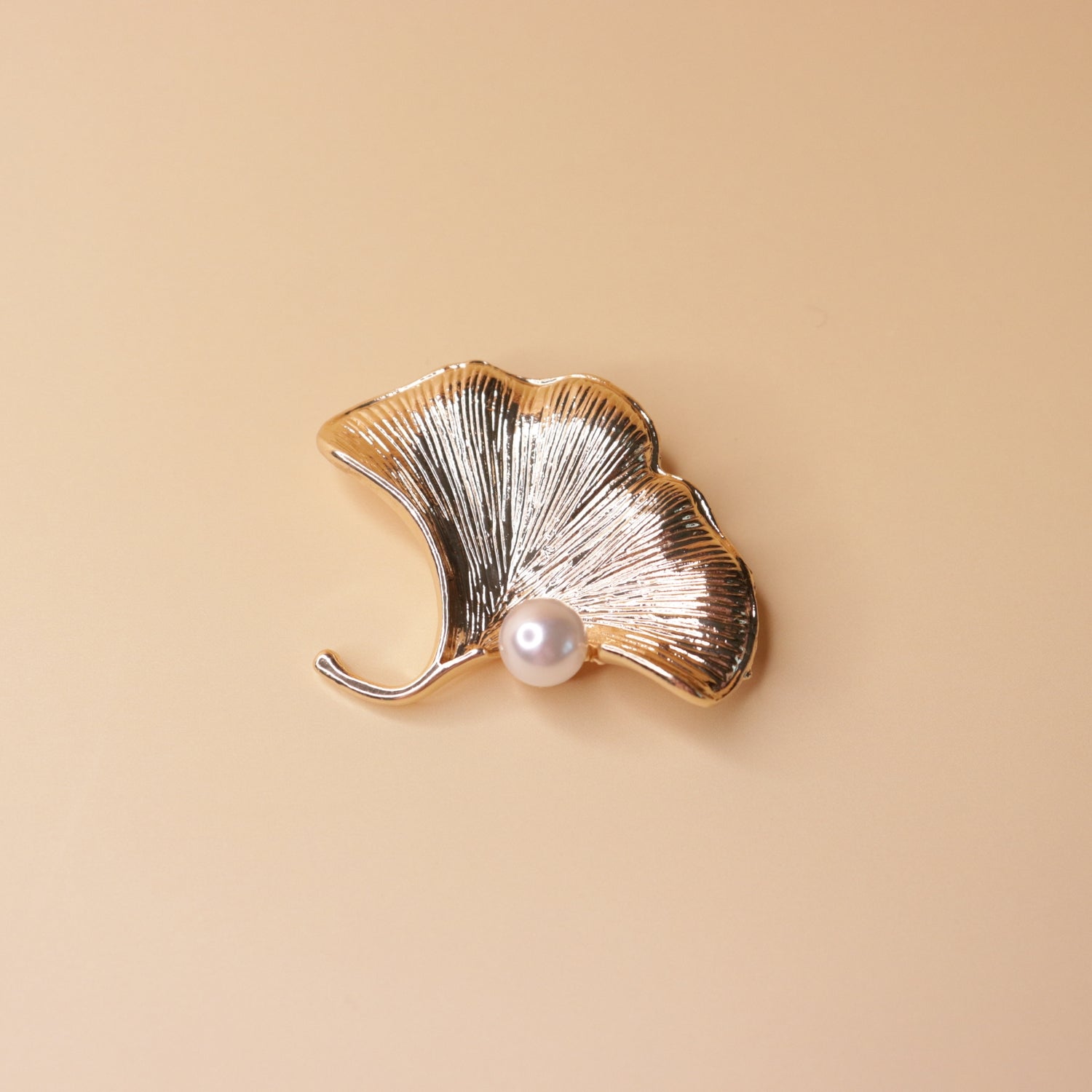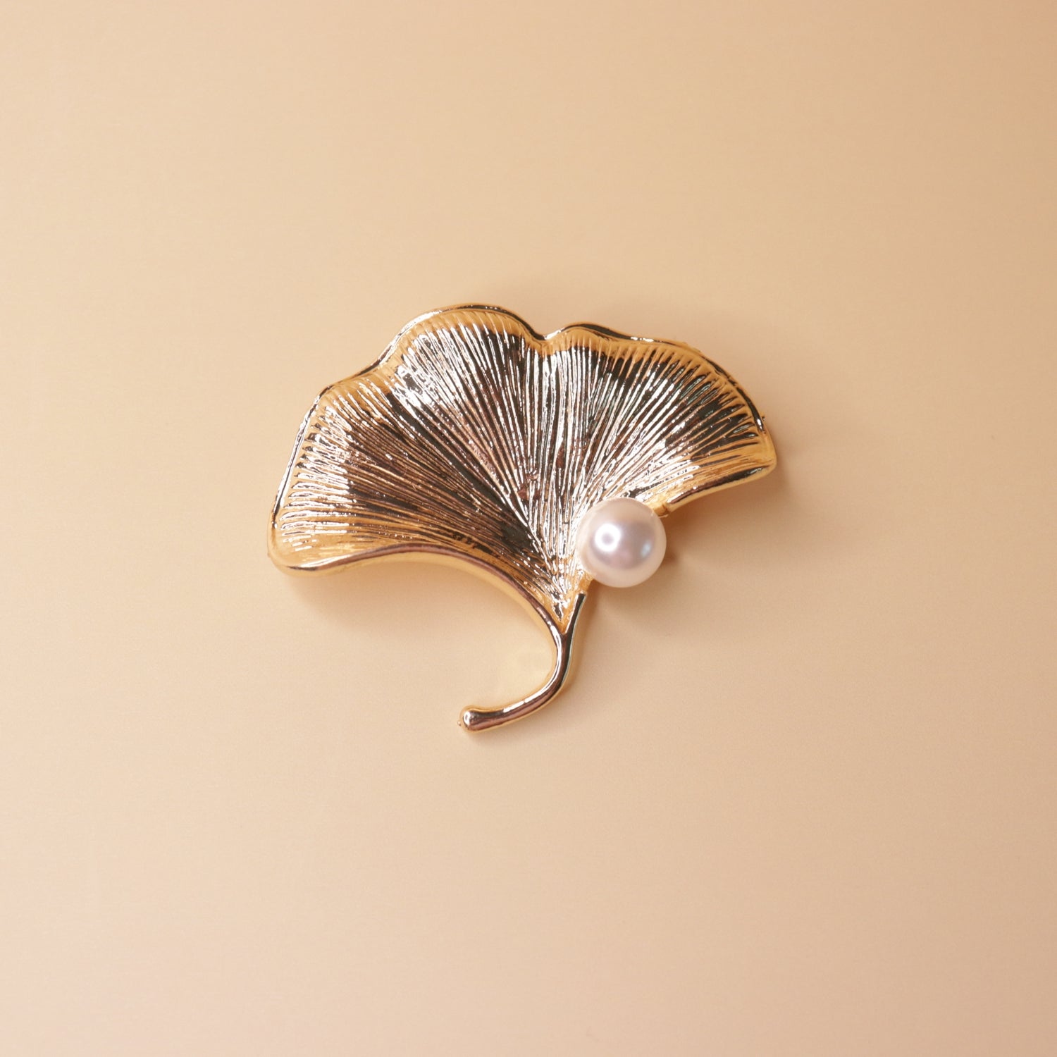 Inspired by the elegant silhouette of the Ginkgo leaf, this brooch reflects the poetic beauty of autumn in a refined metallic finish. A softly glowing central pearl adds a touch of timeless luxury and gentle contrast.Perfect for elevating coats, scarves, or dresses with a graceful botanical accent.