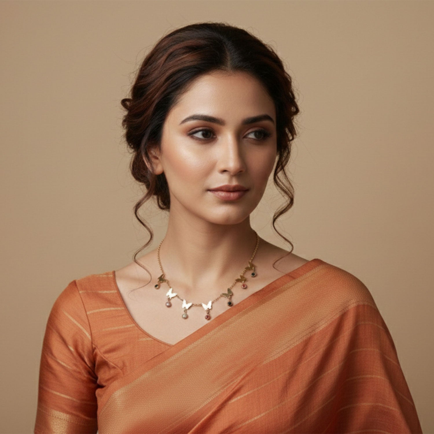 The Butterfly Charms Crystal Neck Chain is a graceful blend of whimsy and elegance. Featuring delicate butterfly charms spaced along a fine gold-tone chain, this necklace is beautifully accented with shimmering crystal drops that add gentle movement and sparkle.