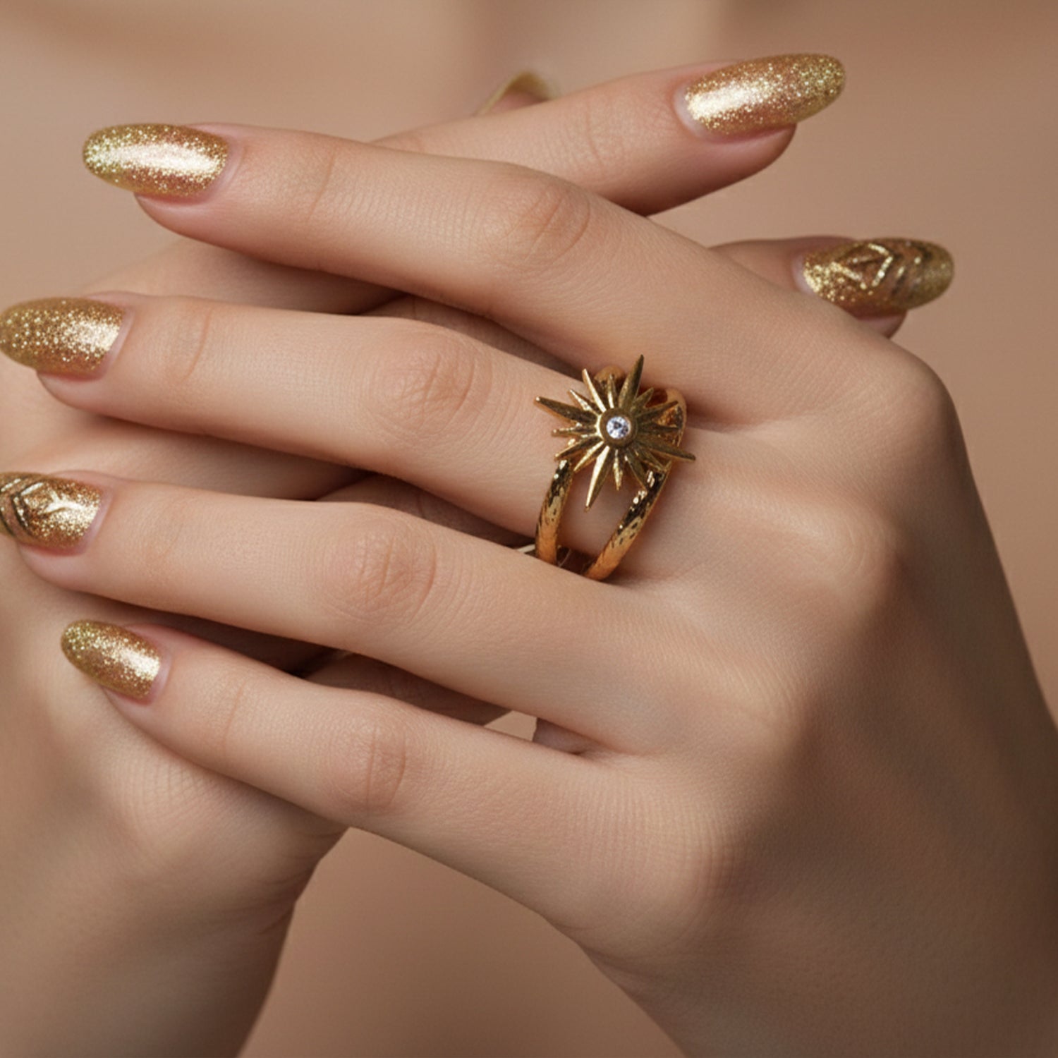 A radiant sunburst design crafted in luminous gold, symbolizing light, strength, and elegance. Delicate yet bold, this ring adds a celestial glow to every look, day or night.