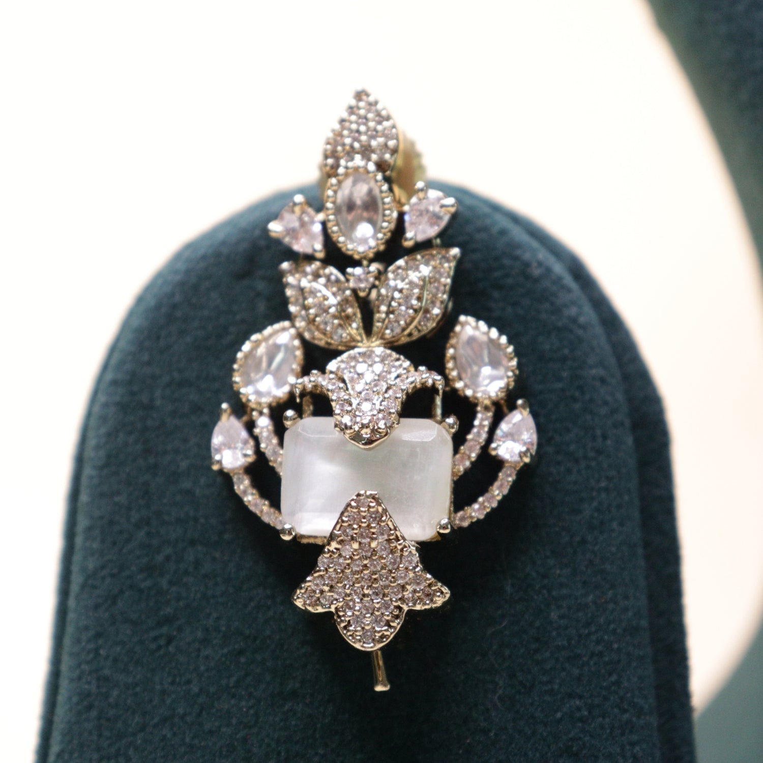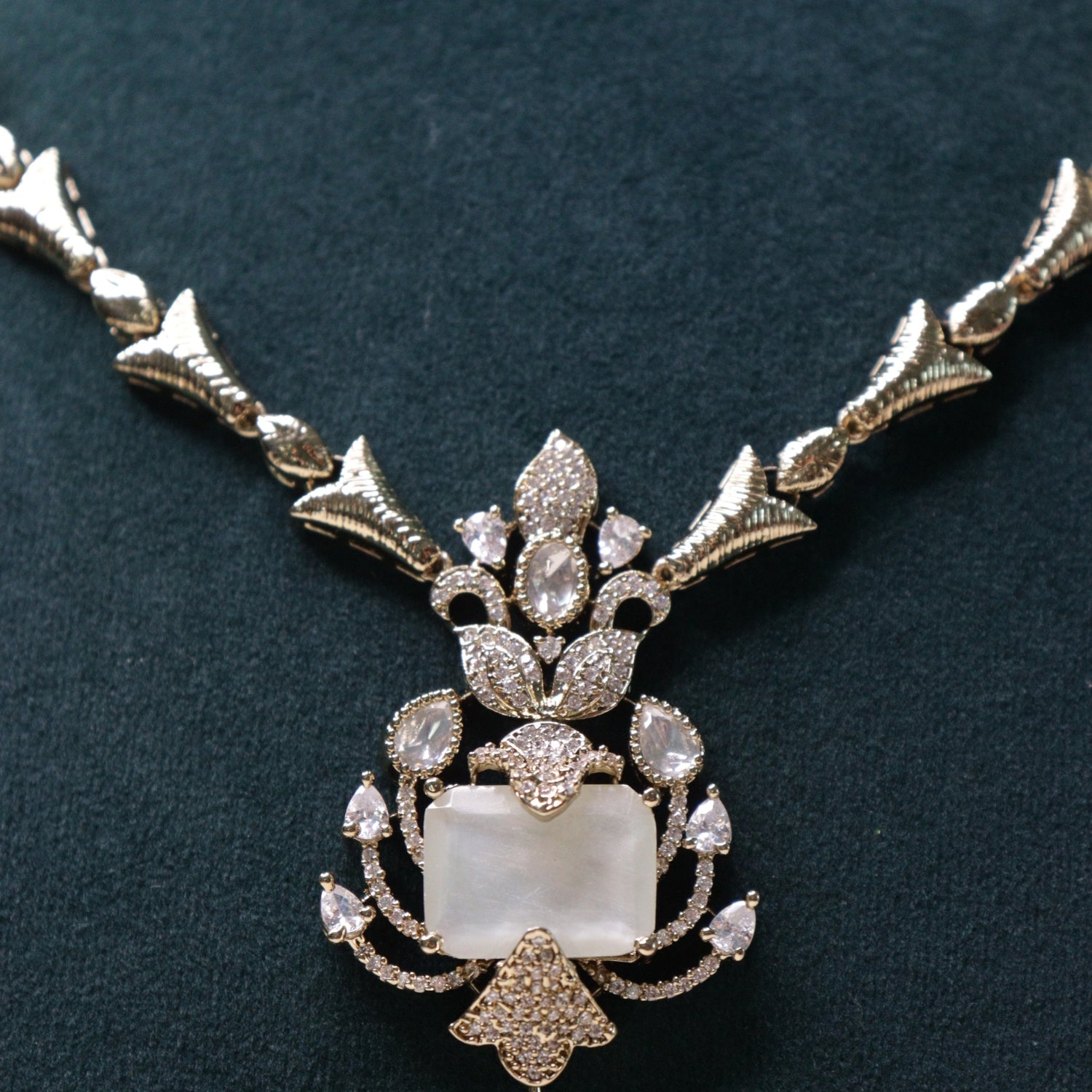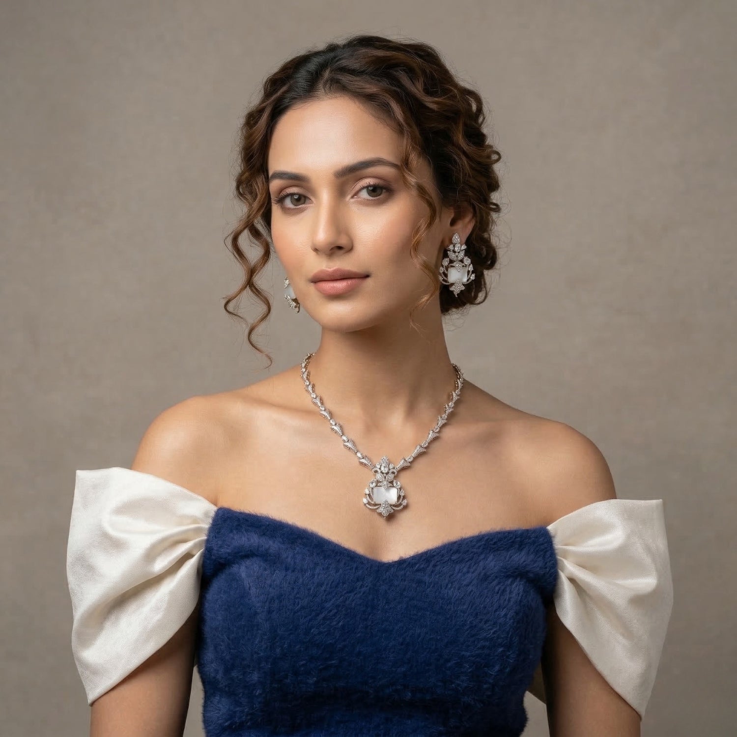 A refined jewelry set blending soft, organic stones with dazzling diamond accents, set in intricate metalwork for a timeless, heirloom feel. Perfect for brides, formal events, or collectors seeking elegant sophistication and lasting impression.