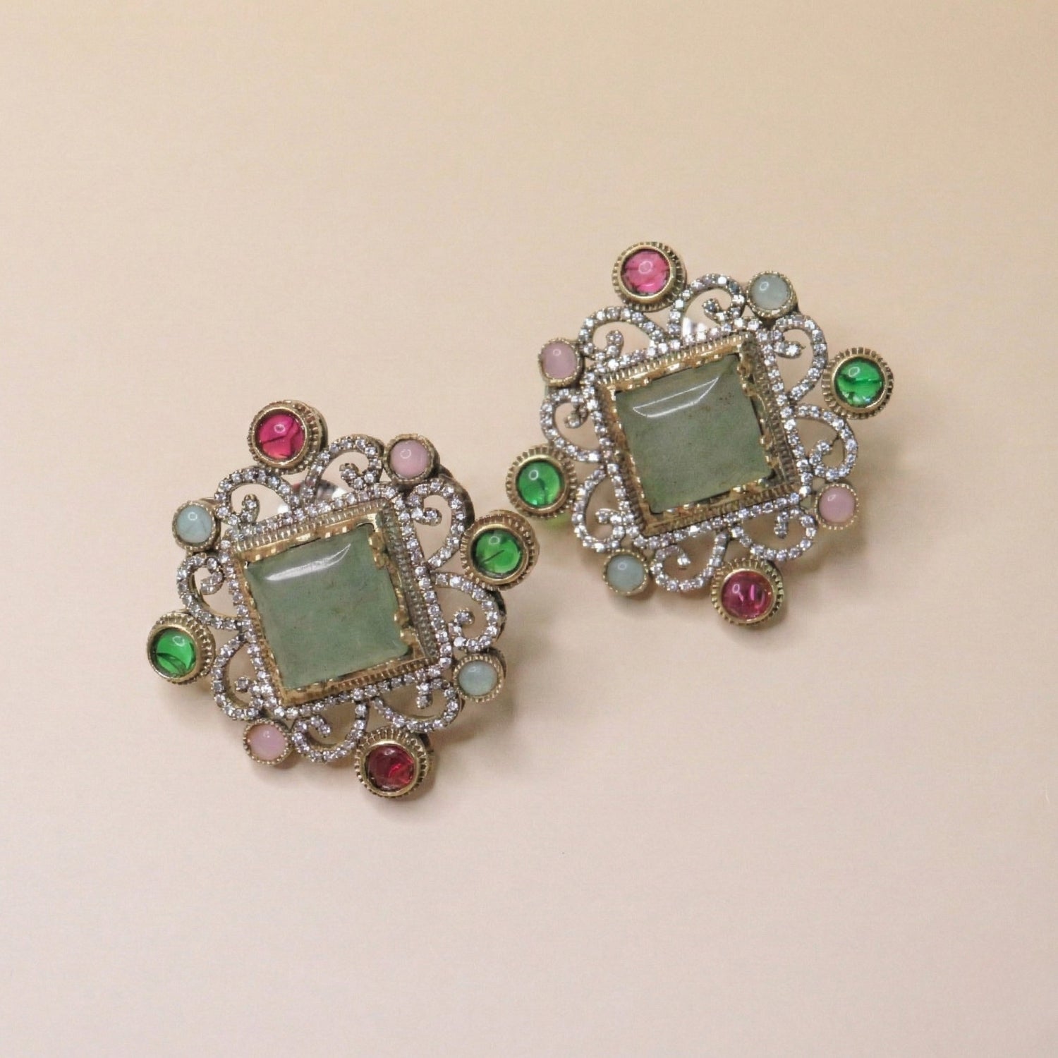 Floral Frame Squares Earrings feature a graceful square silhouette delicately framed with floral detailing, creating a perfect balance of structure and softness. Intricate craftsmanship highlights the floral motifs, while the elegant finish adds a refined sparkle.