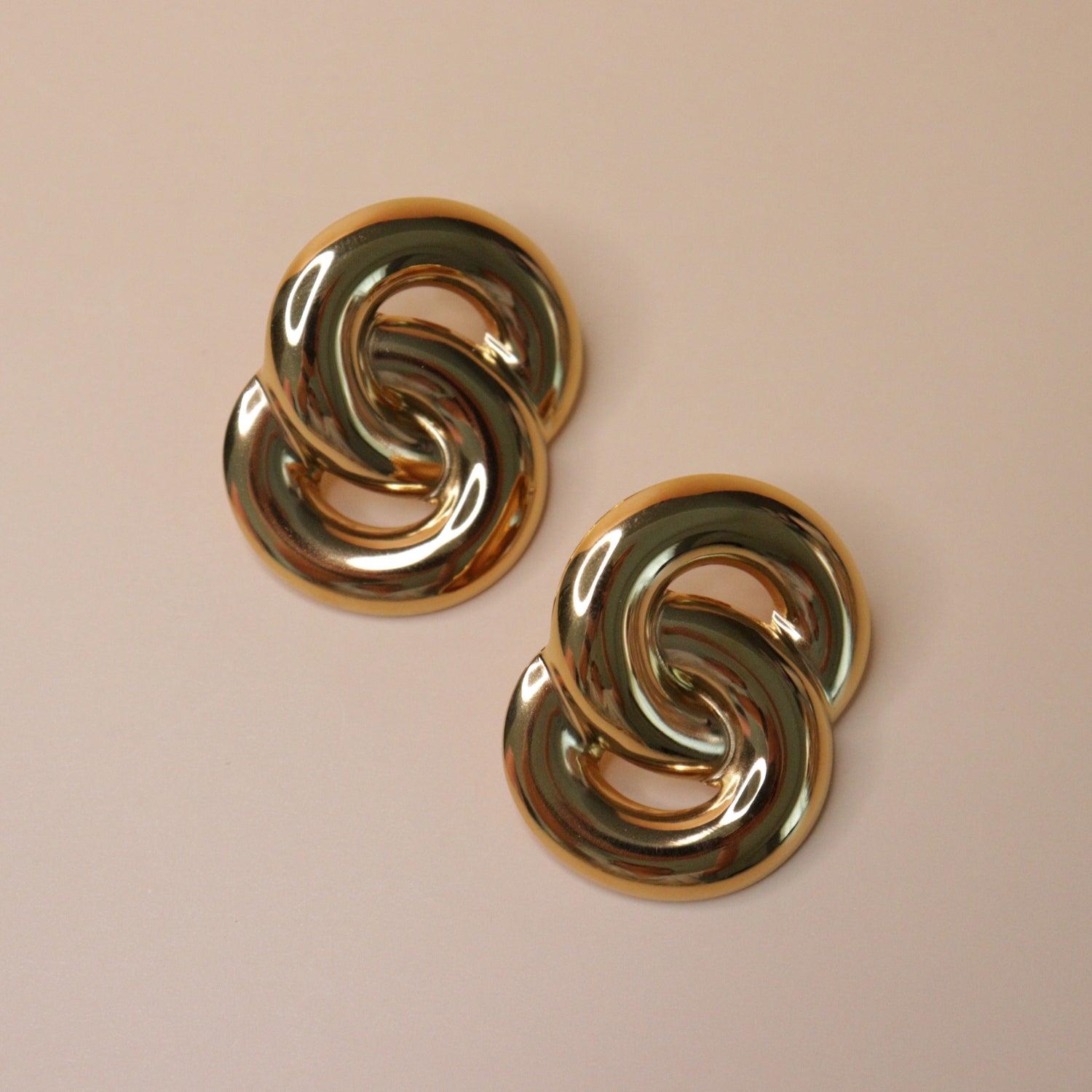 Inspired by endless flow, these earrings showcase a seamless twisted silhouette with a glossy gold surface. The soft, rounded form adds depth and dimension while maintaining a minimalist luxury appeal.