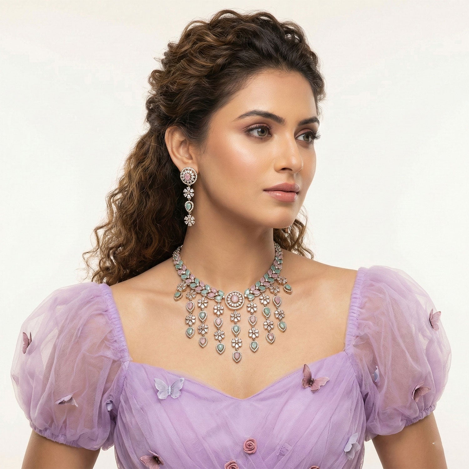 The Nazakat-e-Hoor Set is a poetic blend of traditional craftsmanship and ethereal pastel charm. Designed for the woman who carries herself with effortless elegance, this set captures the essence of "Hoor"—a celestial beauty.