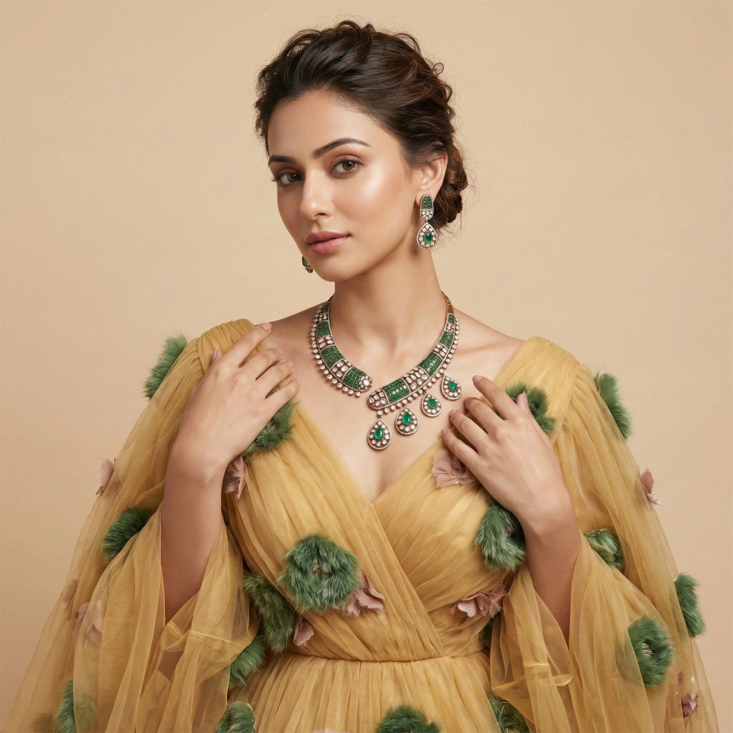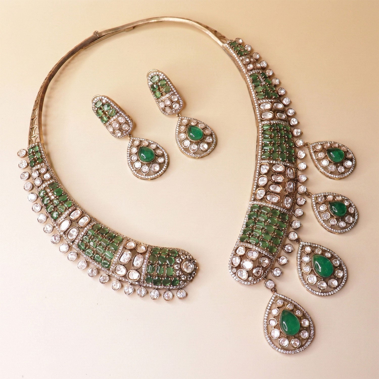 Material: Emerald stones, ruby stones, Jade look stones etc.