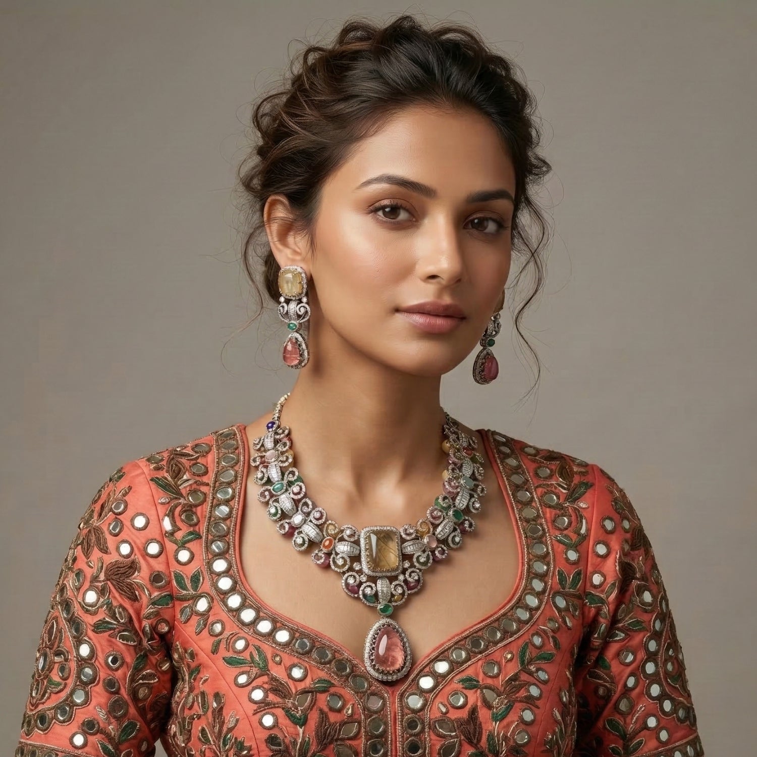 Note : Since the product is handcrafted and the stones are sourced from nature, you might find a slight dissimilarities from picture. No two sets look alike because of different texture of the stones.