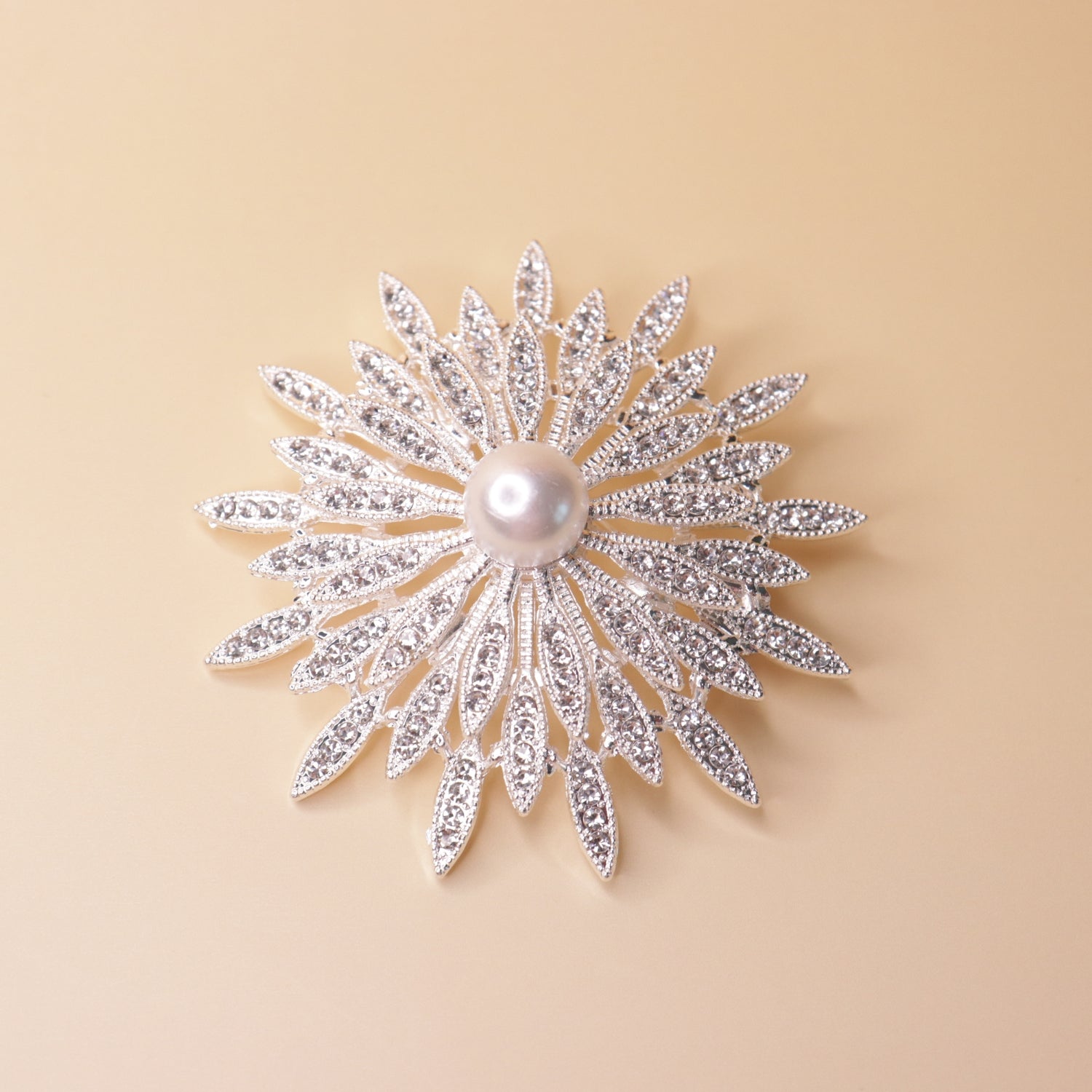 Channel old-world elegance with the Starlet Pin, a vintage-inspired brooch featuring a layered starburst design rich in depth and texture. Its radiant sparkle and intricate detailing evoke timeless glamour and regal charm. Designed with a secure safety pin clasp, it sits beautifully on silks, wool coats, or scarves.